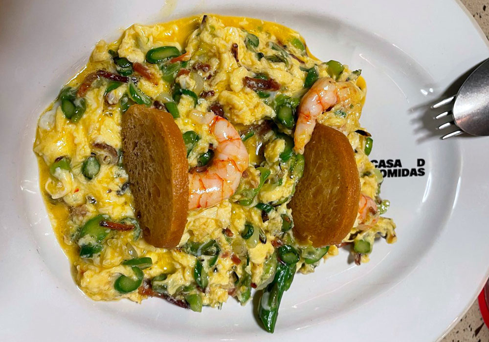 con dos rebanadas de pan tostado clavadas sobre el revuelto. Estaba rico, muy