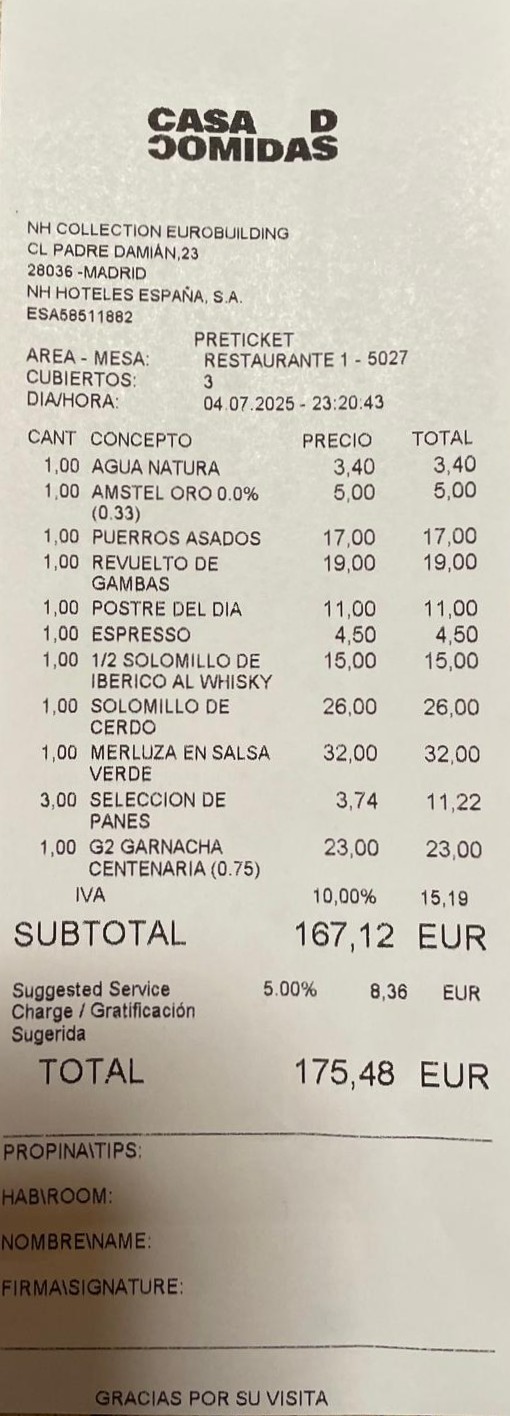 pidió un plato a 17,00 €.