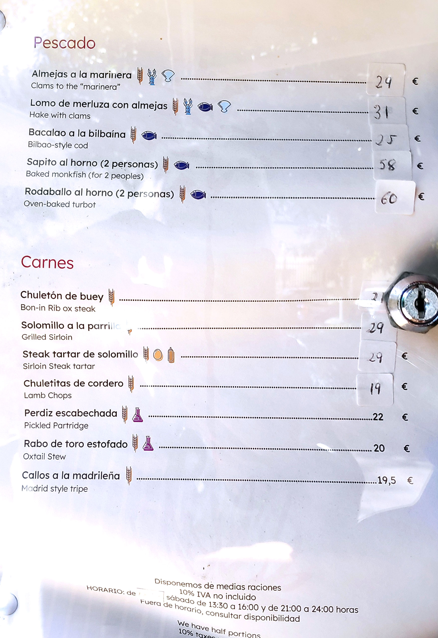 precios pero coincide con la que hay a la entrada del restaurante. La