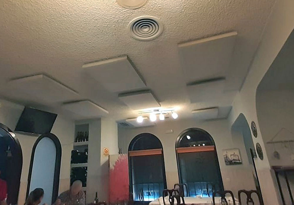 techo es de color blanco y tiene unos paneles