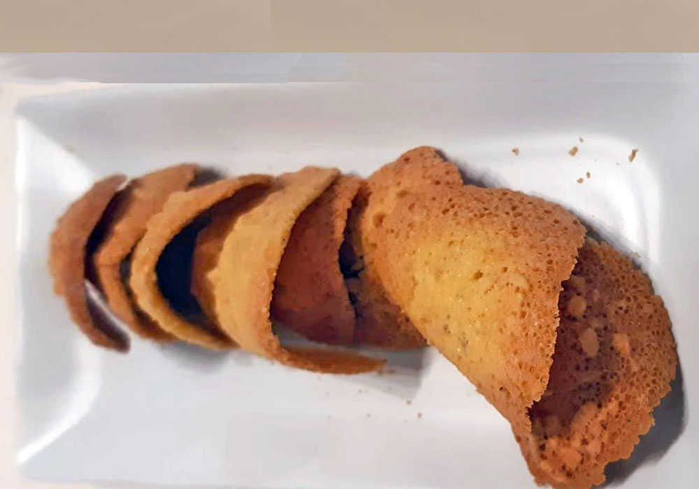 un plato con tejas almendradas, realizadas directamente