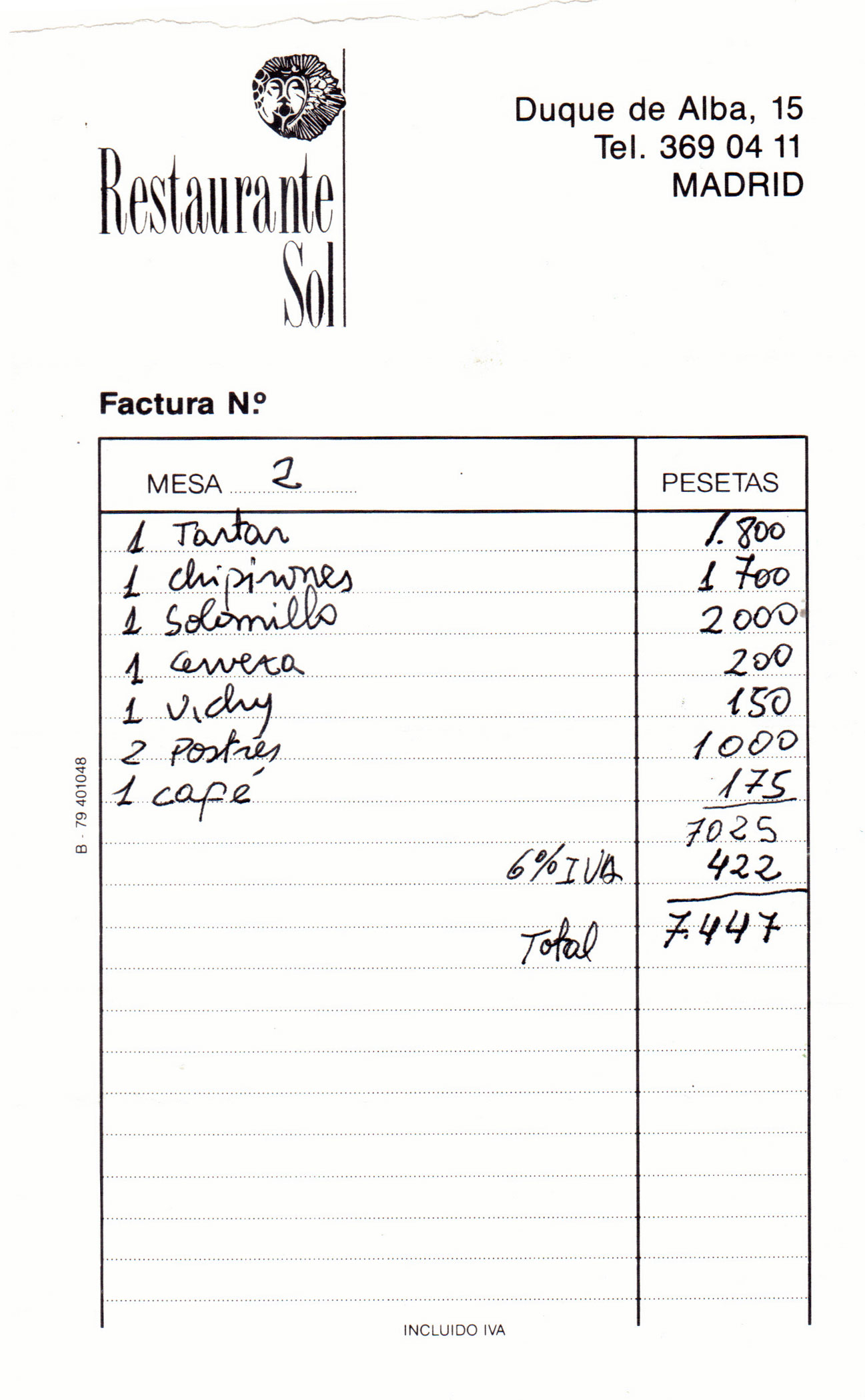 | La factura: No se conserva. Pero tenemos una