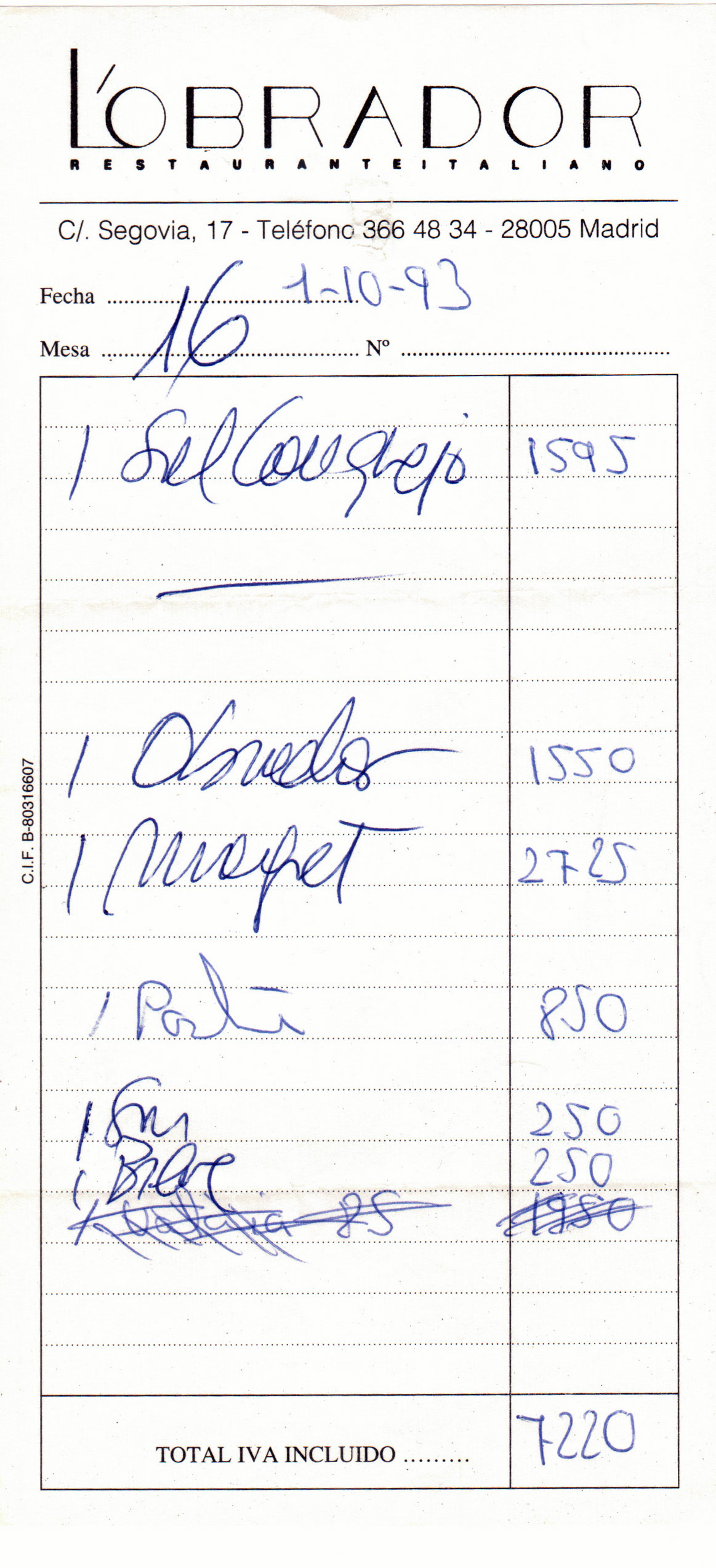 el restaurante por entoces y a que precio. Se indican a continuación