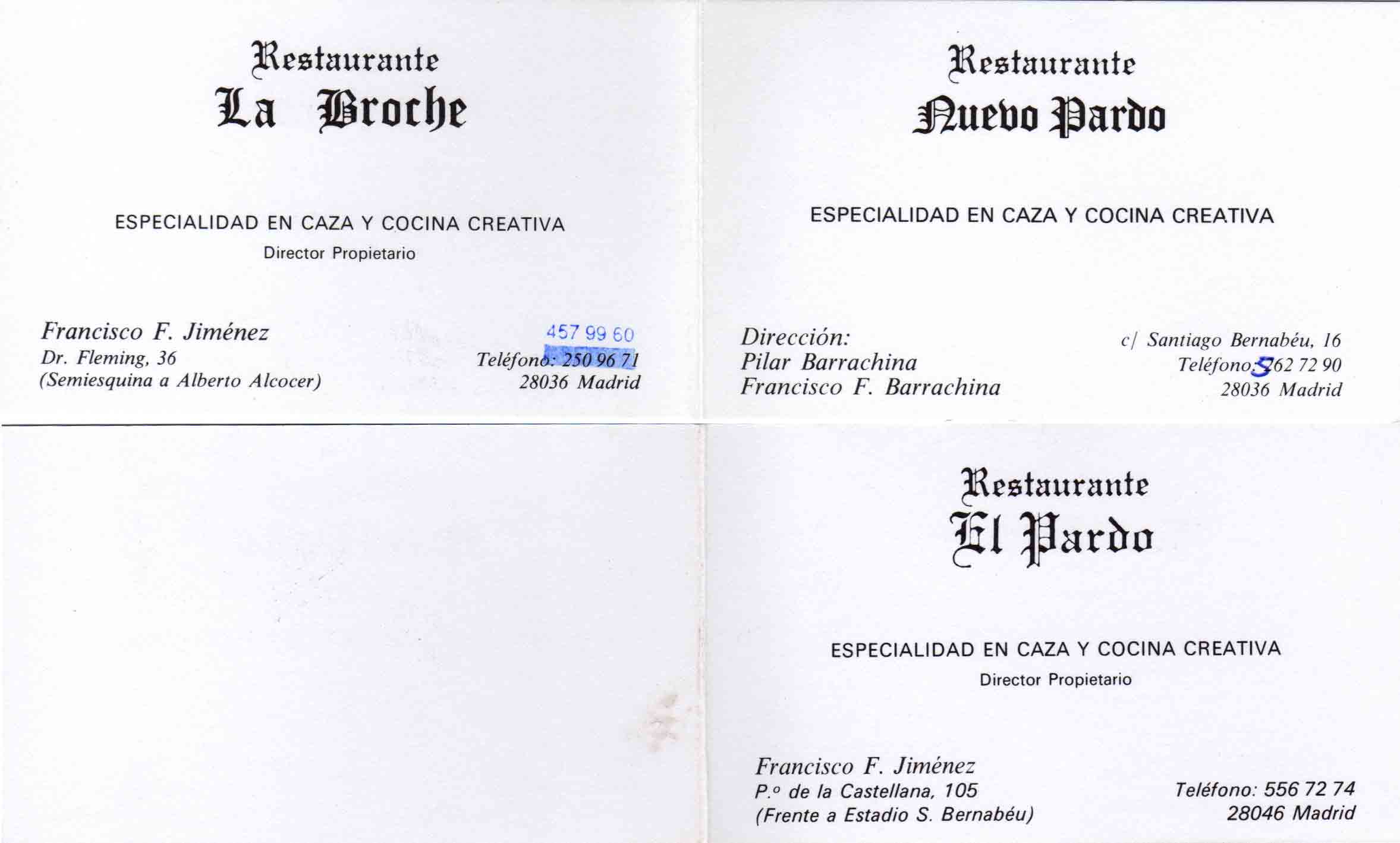La Broche, en Doctor Fleming 36, y el Pardo, en el paseo de la Castellana