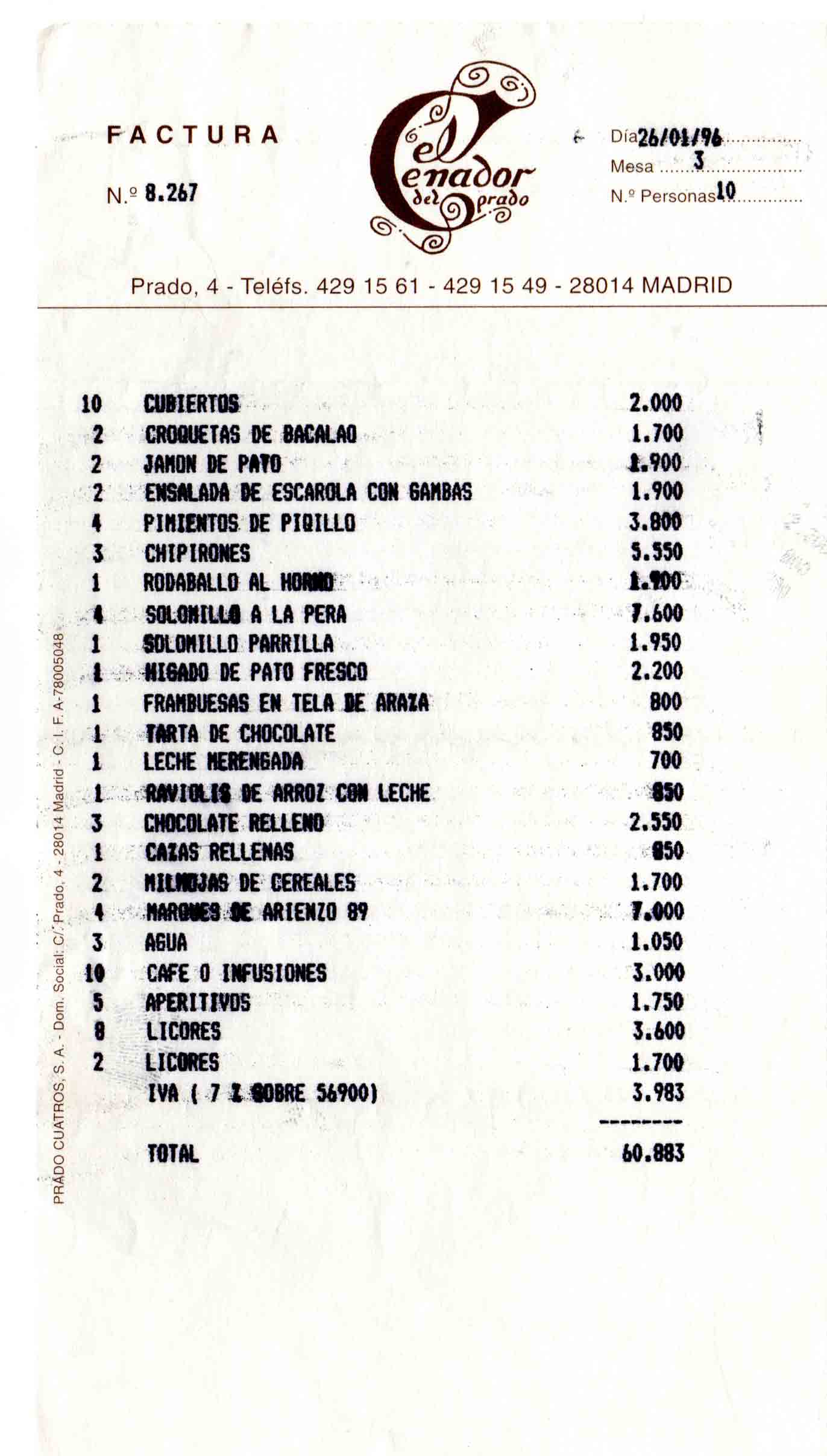 a 2,1 € la unidad, y por otra parte el "cubierto" a 1,2 € cada